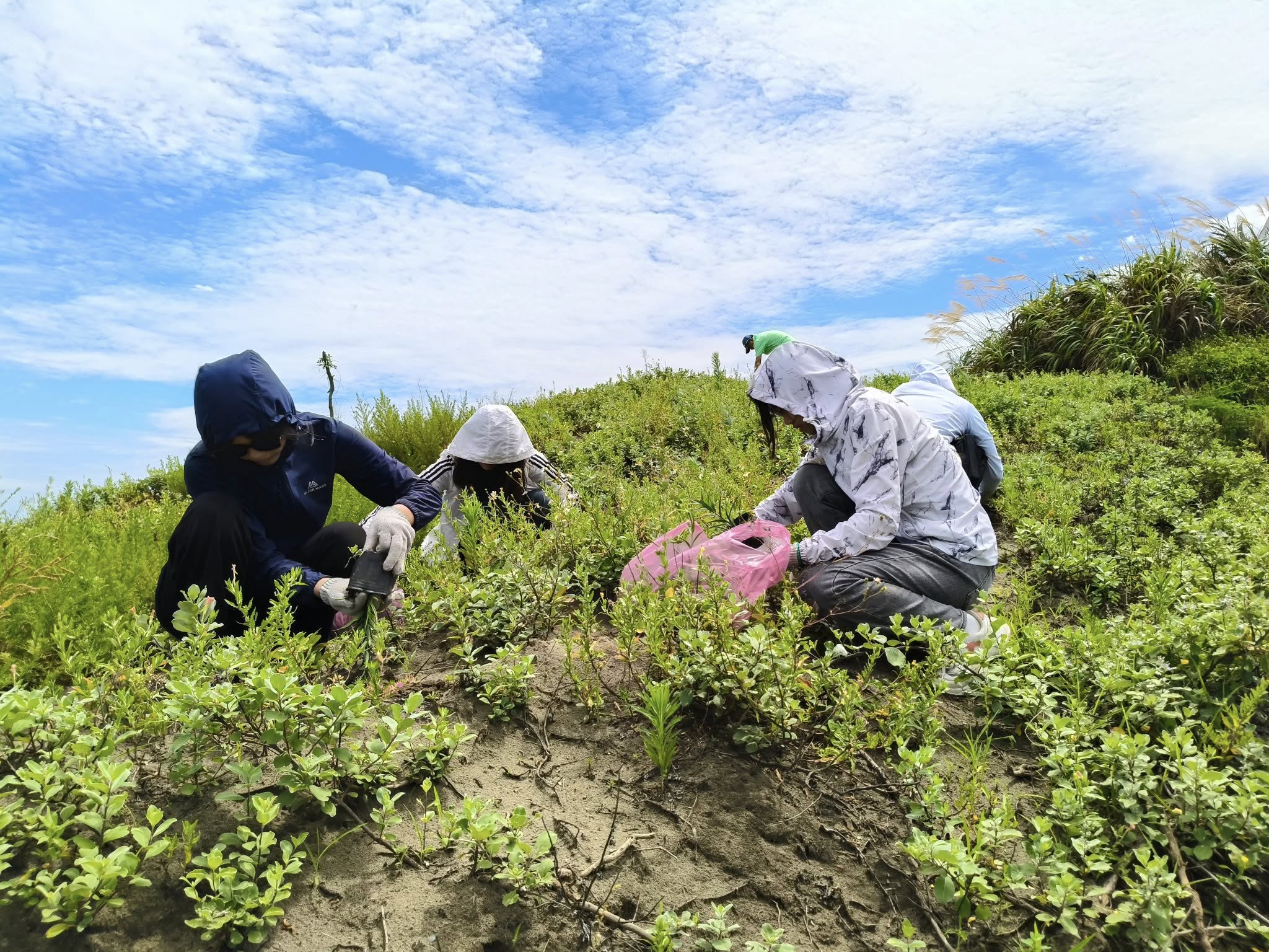 今天我們帶著福智青年愛種樹團、愛種樹義工團,一起到林口嘉寶海岸的斜坡上,種下2,000株百合花。