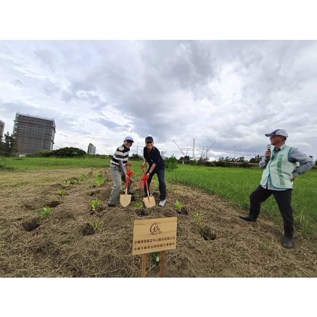 很神奇的是,雖然烏雲密布,但始終沒有下雨,而且天氣十分的涼爽,再加上都更教父花敬群妙語如珠,楊三峰董事長的熱情邀約,種樹活動就在愉快的氣氛下進行。